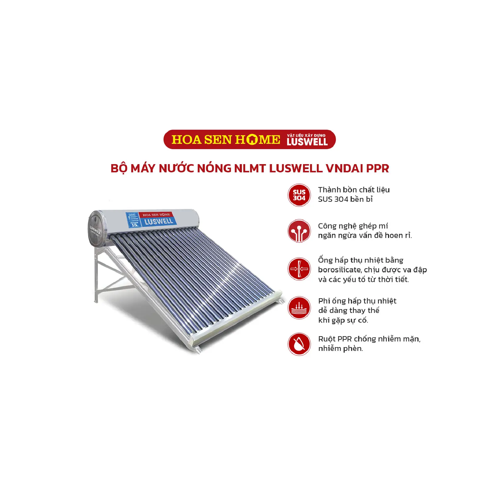 Máy nước nóng năng lượng mặt trời PPR LUSWELL VNDAI 200L – 20 ống